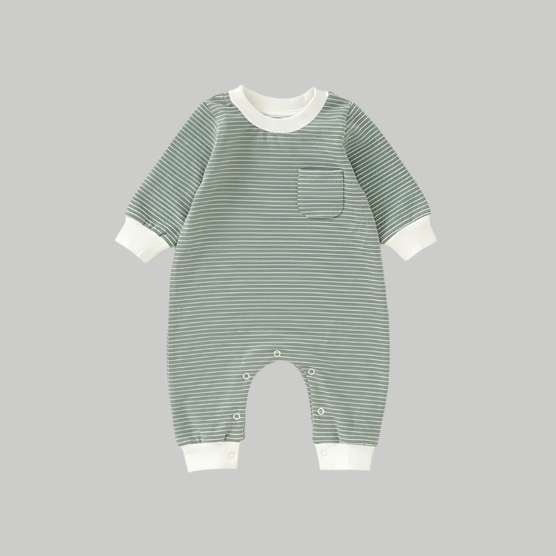 Made from a premium blend of 95% organic cotton and 5% spandex, this French terry romper offers all-day comfort with just the right amount of stretch. The yarn-dyed stripes bring a timeless, playful look, while the contrast ribbed cuffs and neckline add a modern touch. Designed with practicality in mind, it features an easy snap closure at the crotch for quick nappy changes and a sweet chest pocket for a hint of charm. A comfortable, easygoing essential for little ones on the move.